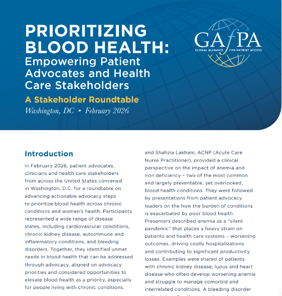 The Global Alliance for Patient Access advocates for health policies grounded in patient experience and the clinical insight of health care professionals, urging health systems to prioritize prevention, screening and early-stage diagnosis and treatment.